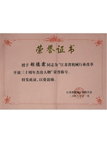 Outstanding Entrepreneur in Jiangsu (Certificate)