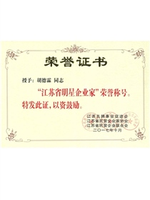 Star entrepreneurs of Jiangsu province(Certificate)