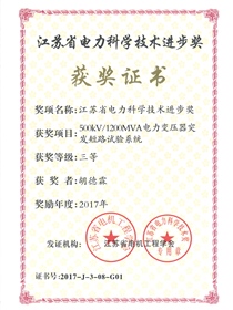 The Third Prize of Jiangsu Provincial Power Science and Technology Progress Award